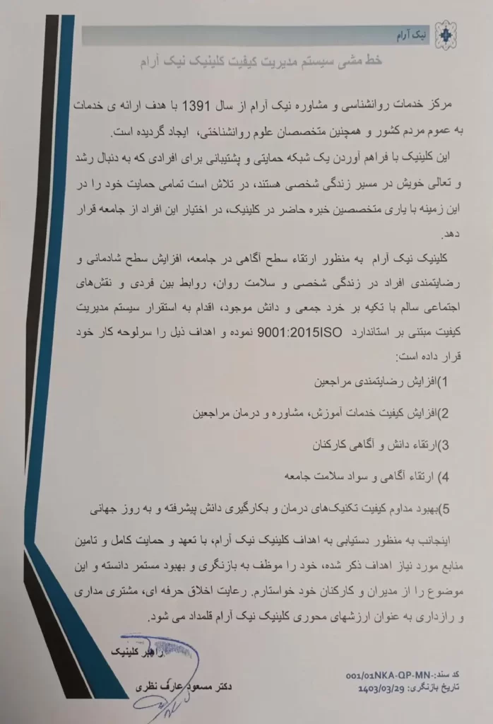 کلینیک نیک آرام با برخورداری از کادری مجرب در کنار نیروهای جوان خدمات مشاوره، روان درمانی و روانپزشکی خود را در اختیار متقاضیان قرار می دهد.